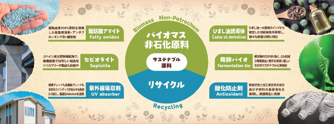 バイオマス原料を使用し、94~100%の高バイオベース度を有する添加剤。